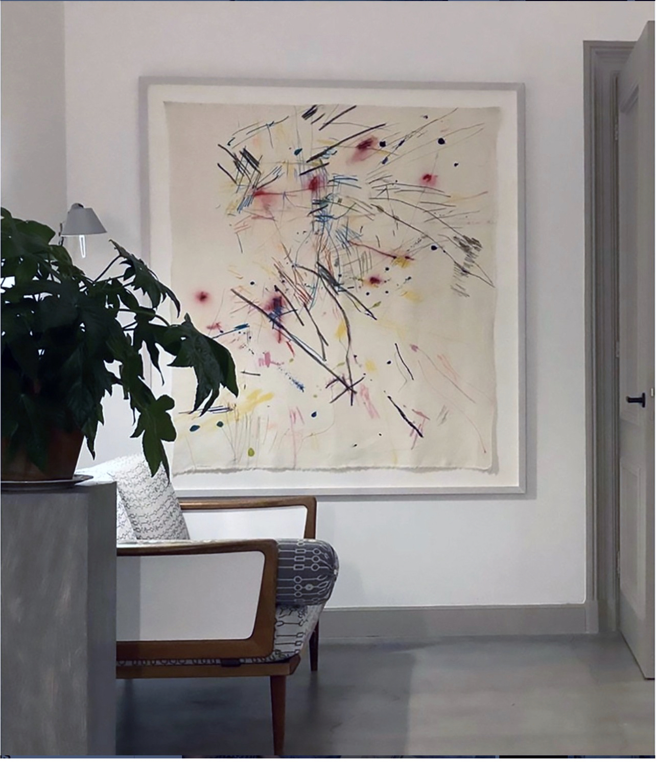 Her focus was on the music and the sounds of her collaborator, which she responded to via automatic drawing. She soon lost track of her location and direction in the space.