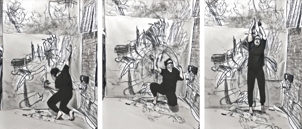 I give control to an improviser whose gestural mark making is in response to the spirit of the sounds within the space. Their impulses are embodied patterns - vitality affect contours (dynamic time-shapes) navigating through anticipation, tension and resolution. It’s a mediumistic act that must then be completed by the viewer. - Claire Zakiewicz