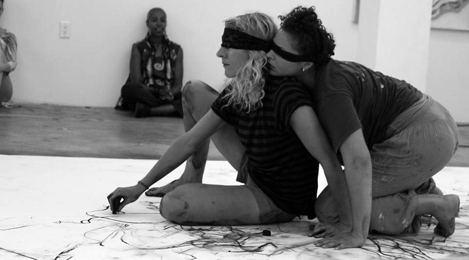 Claire Zakiewicz, in collaboration with performance artist and shaman Siw Laurent, presents a live soundscape and drawing ensemble where Laurent plays the role of a blindfolded 'automatic' draftswoman in dialogue and response to Zakiewicz's sounds, set design and the presence of the audience. This performance explores boundaries of duality and non-duality and degrees of taking and letting go of control in painting. This performance furthers Zakiewicz's academic research into the phenomenology and architecture of drawing.