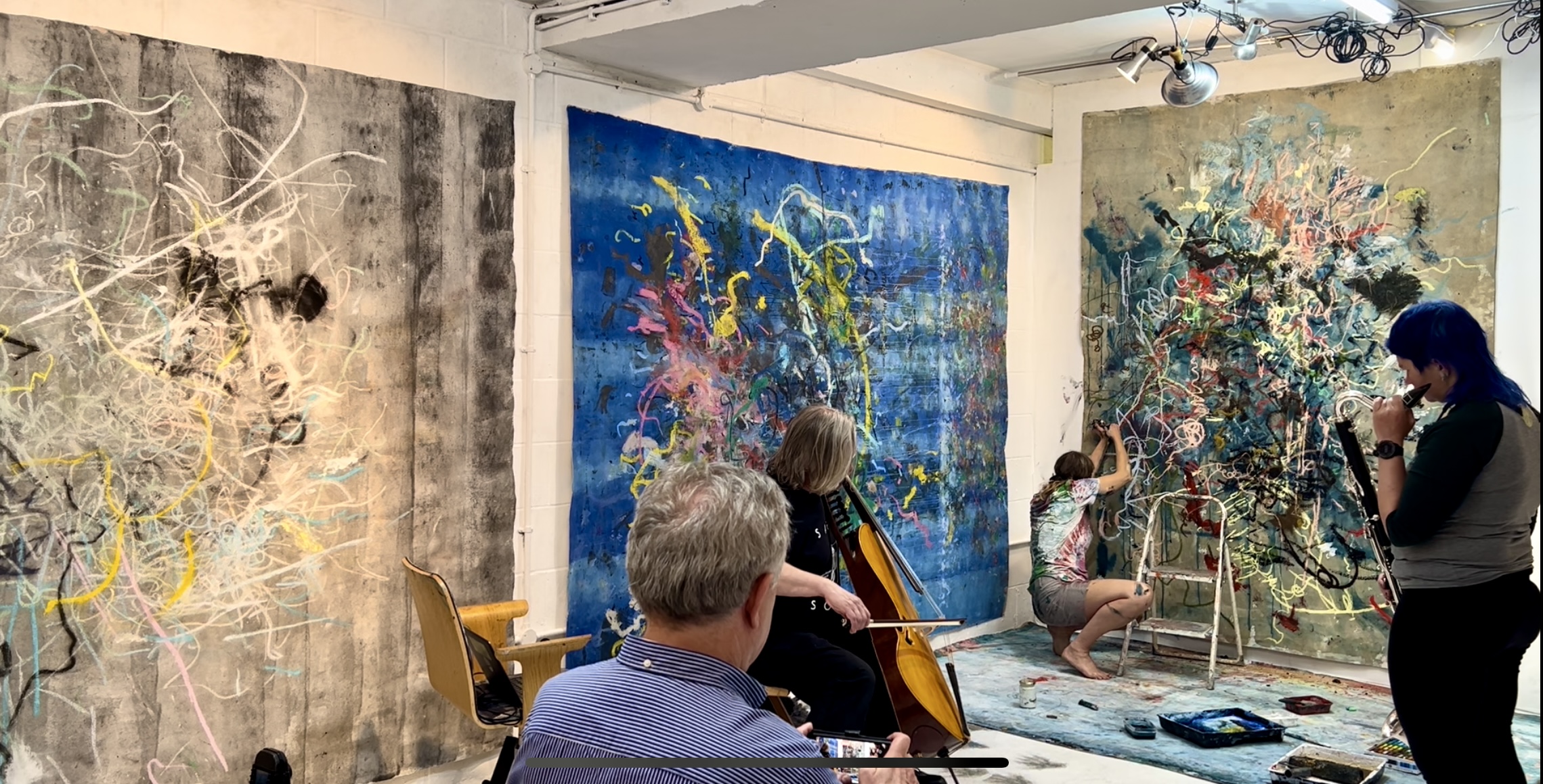 Since returning to London from New York in 2020, I’ve worked with an evolving ensemble of musicians and dancers exploring transdisciplinary improvisation - using sound, movement, and painting to open new creative pathways.