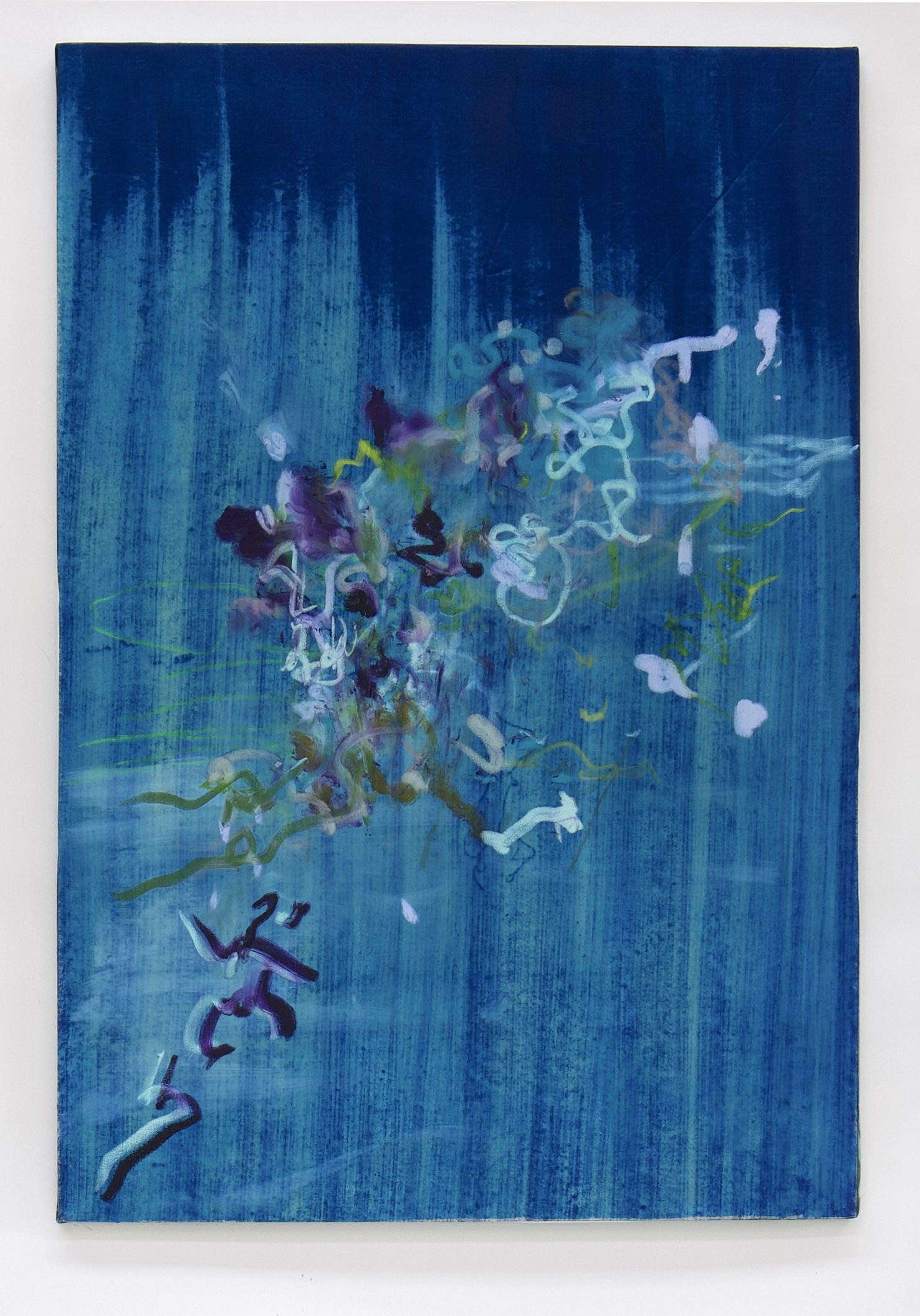 Oil, fabric painting, oil paint sticks and watercolour on canvas