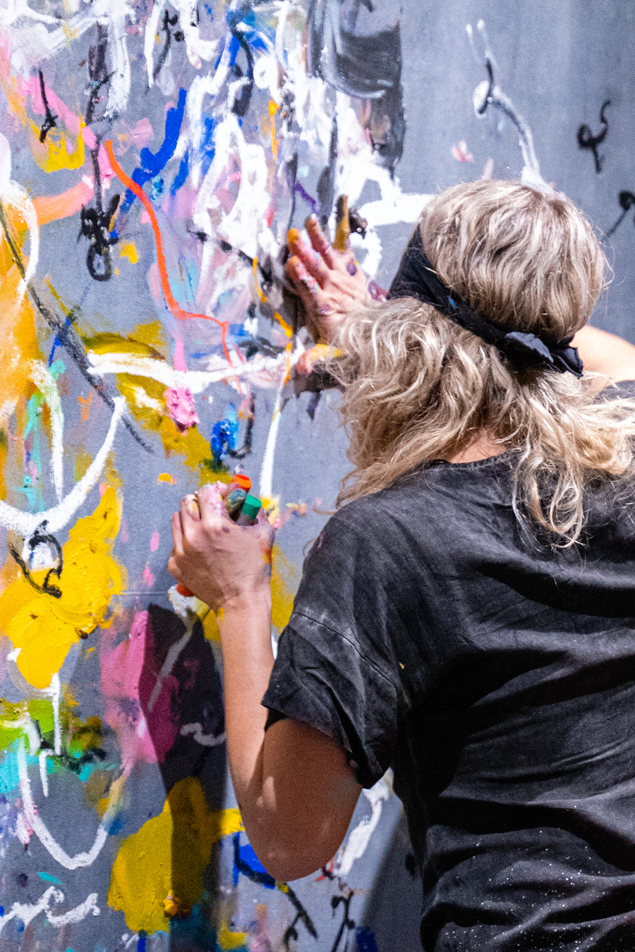 Zakiewicz’s paintings are created through live performances, in public and private spaces, and often in collaboration with artists of other disciplines.