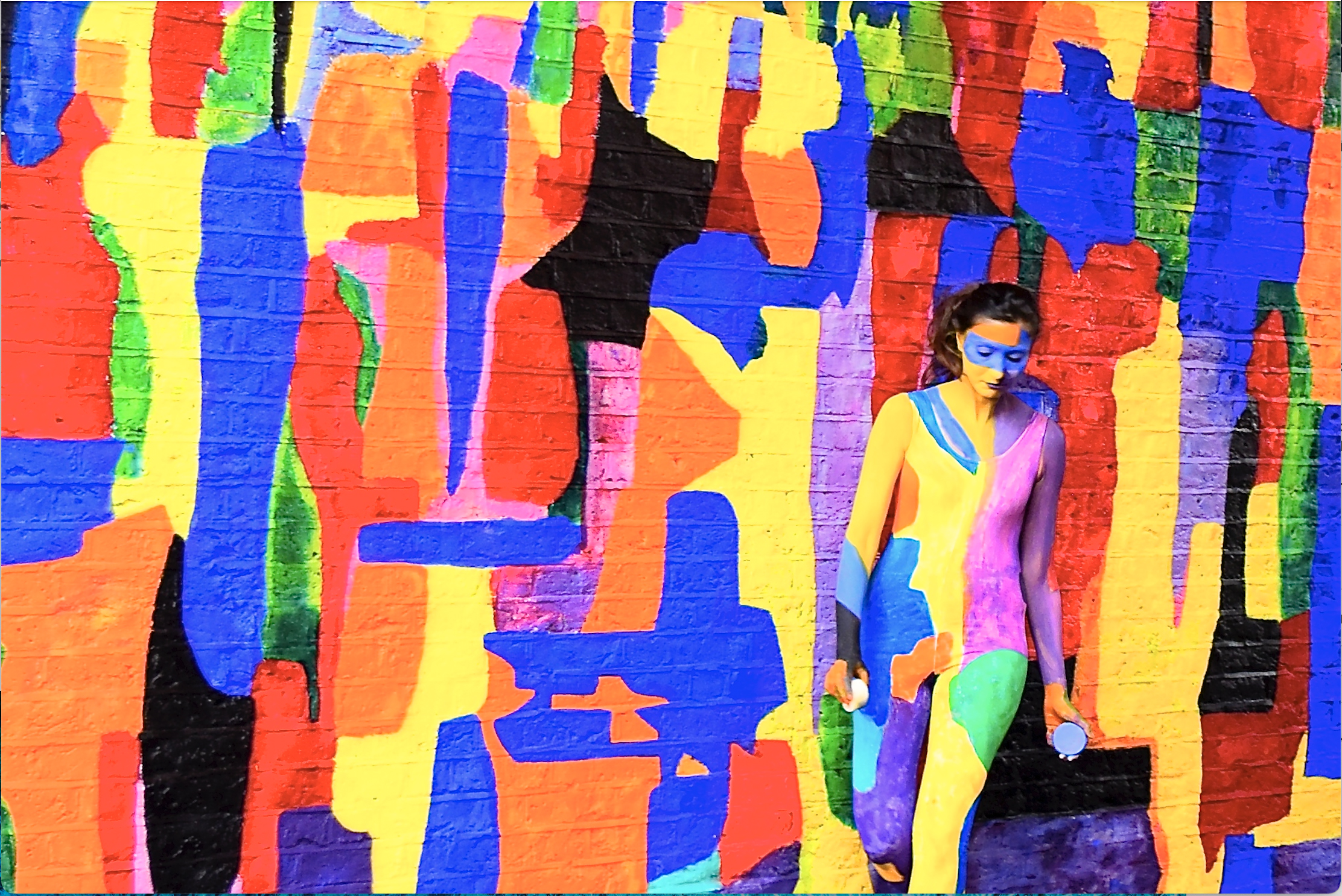 Aurelie Freoua is a French artist and performer living and working in London. She originally studied Mathematics and Economics in Paris but went on to study art and completed an MA in Fine Art at Camberwell College of Arts, London 2016. She also participated in the Slade Summer School. Since then, her paintings have been exhibited in several group shows in London, New York, Miami, Paris and the South of France. Aurelie had several solo shows in London, including ‘Symphony of Colours’ in Mayfair (2017). Her artworks have featured in poetry collections including ‘Echoing’ published by Ampersand. She created a work specially for the Bonhams’ auction in support of the Grenfell Tower victims (2018). She has taken part in workshops organised by the Digital Maker Collective at Tate Exchange, Tate Modern. Over the past four years, Aurelie collaborated more and more with the Vortex Jazz Club and improvising musicians, creating music and art simultaneously with the musicians and artists using similar sonic and visual approach. She has improvised live painting in response to music during The London Jazz Festival in 2017 and 2019; she curates and performs in multidisciplinary, experimental and immersive live performances called ‘Resonances’, merging visual art, musical performances, poetry and dance. Aurelie has designed covers for albums by Raphael Clarkson, Paulo Duarte and Henrik Jensen, released on Babel Label in 2019 and 2020. She has recently worked on set designs and costumes for several theatre plays at Theatro Technis alongside her acting performances. She created a mural painting ‘Misterioso’ (7m20 x 5m50) in Shoreditch, which was the backdrop for ‘The Dancing Wall’ performance. Aurelie is currently developing projects with musicians, poets and dancers for upcoming events. Through her work, Aurelie aims to explore and transcend such notions as the invisible, movement, ephemerality and the intangibility of emotion through vivid colours and harmonious compositions of form, line and light. Throughout her practice she values authentic representation and intensity in a process of ‘making visible’. website: www./aureliefreoua.com