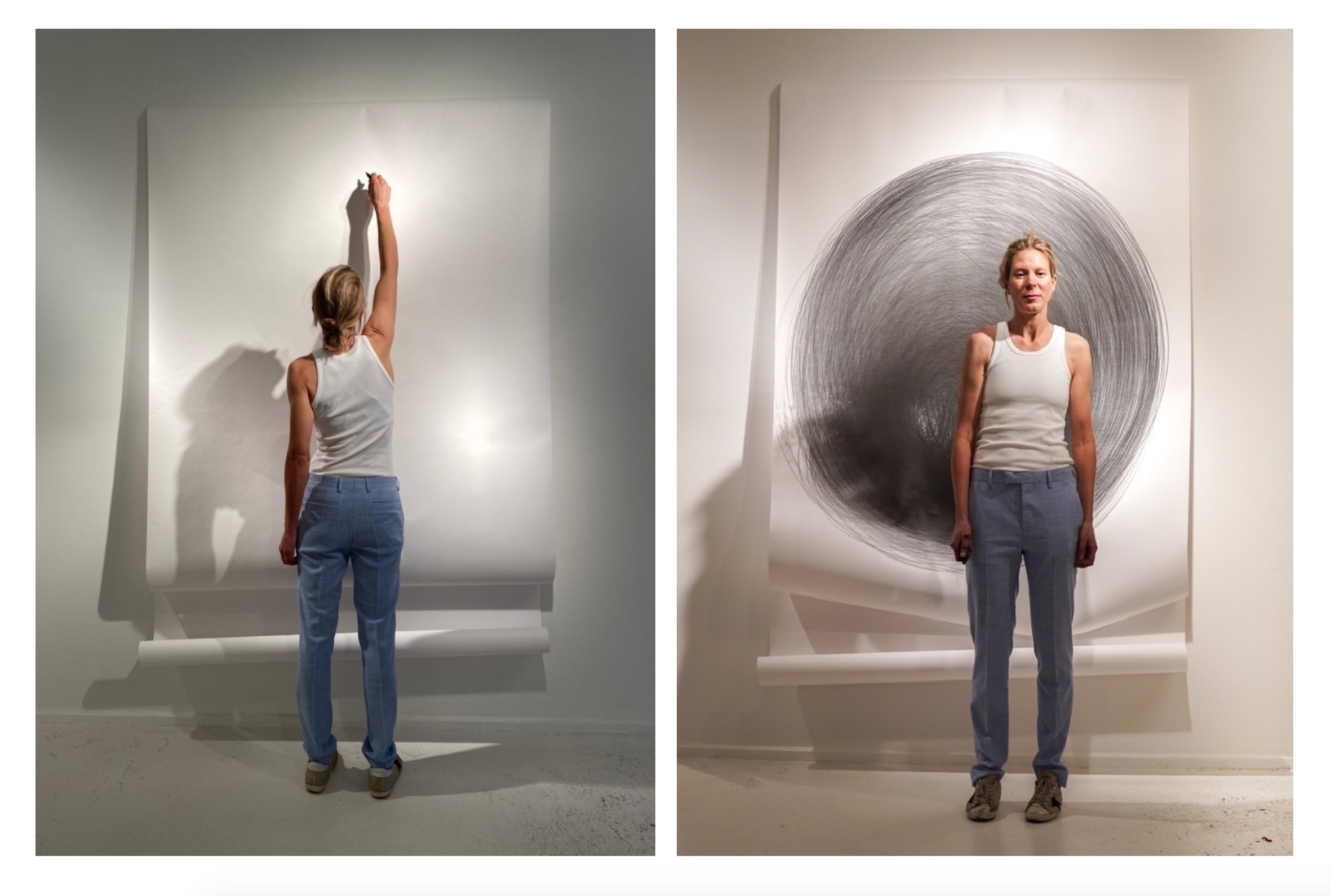 This particular series titled Collaborative Control examines the spatialization of time, body memory and colour theory. The temporal aspect of these works, performed in real time, as one continuous motion, exposed the various distinctions between conceptual time and real time.