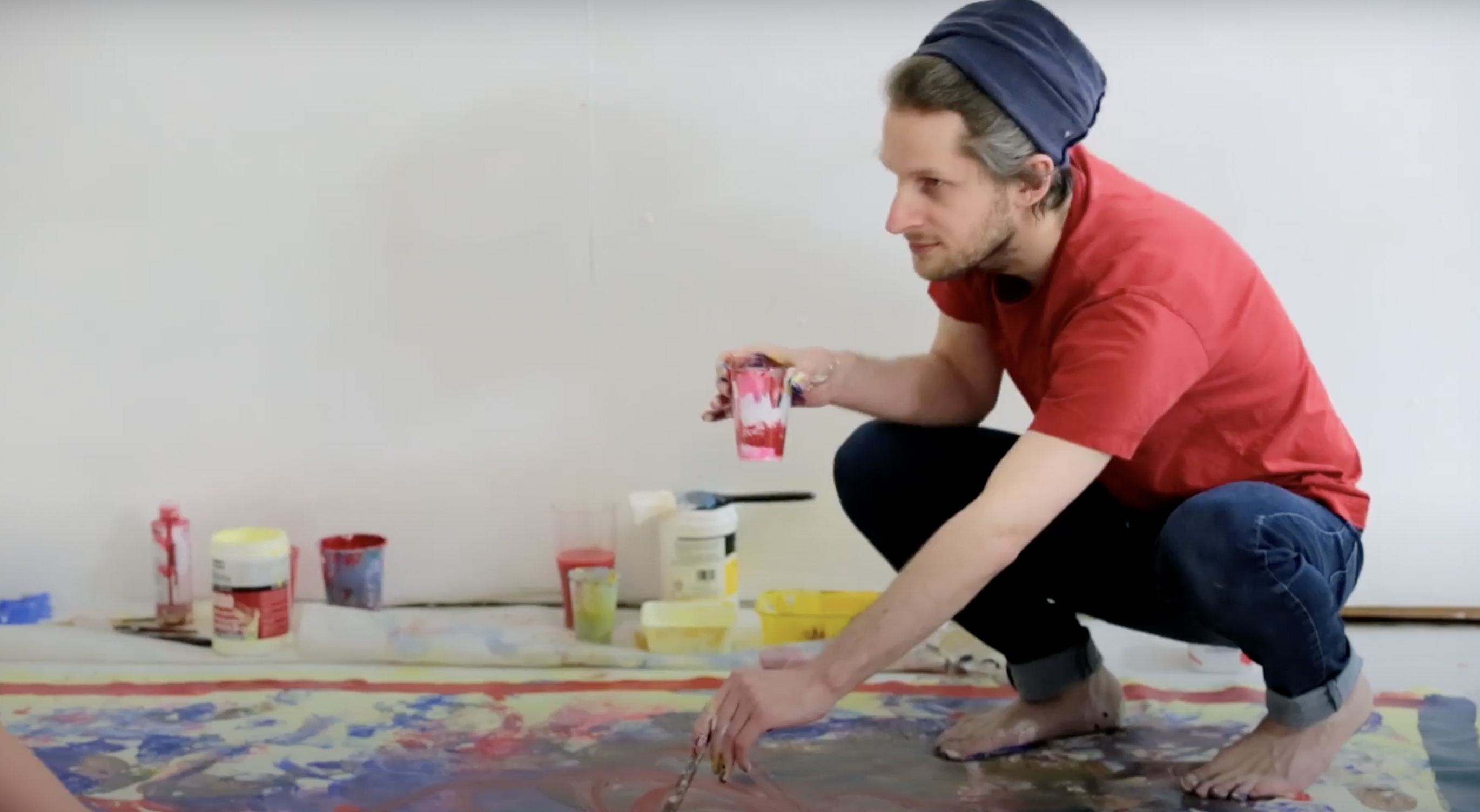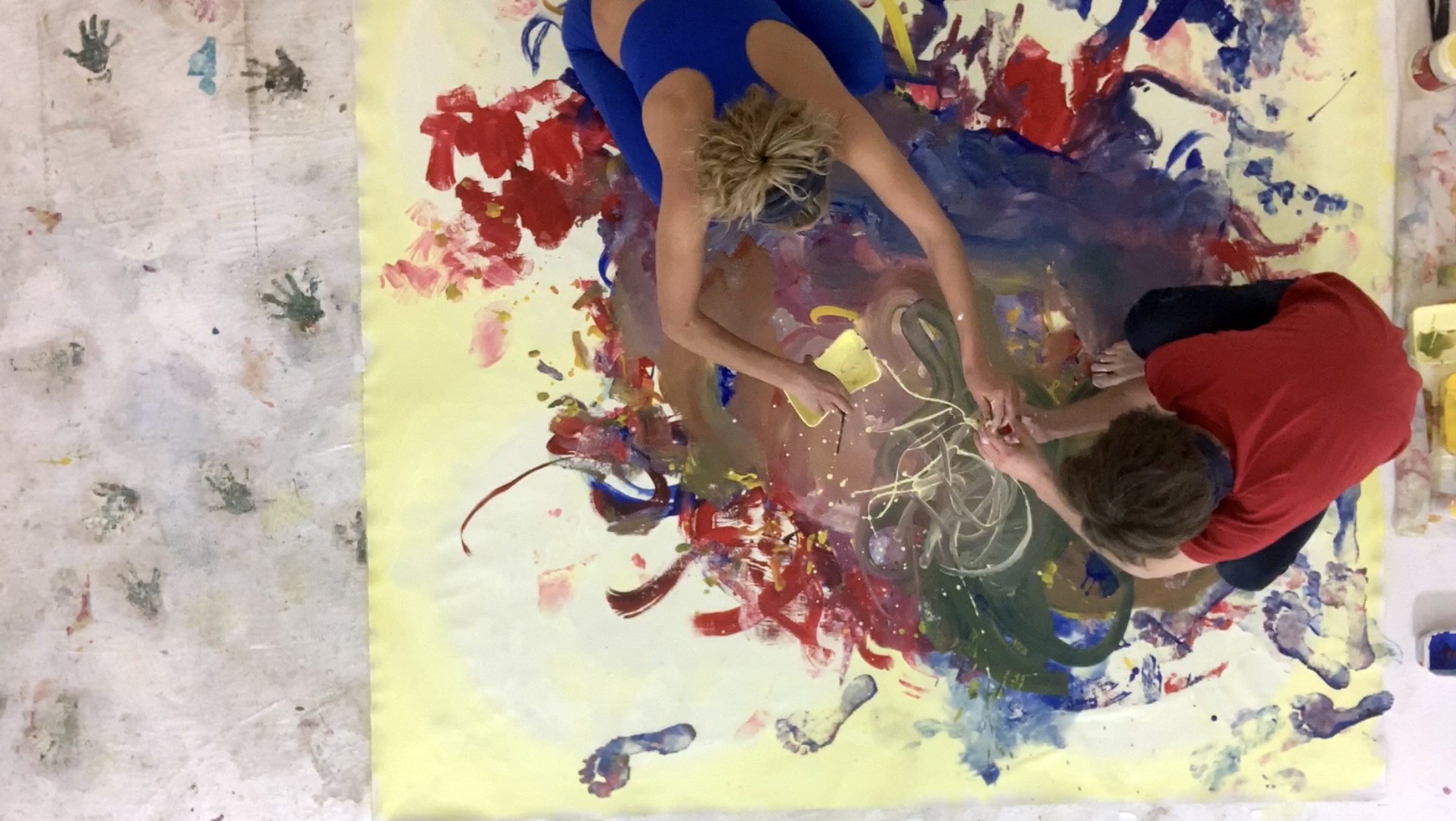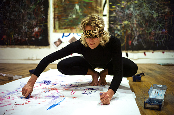 Performing brush strokes is a humanistic act - it is rooted in the body. “Follow a set of patterns, rather than have expectations”, says Claire. She finds pleasure in the surprise outcome and this is reinforced by experiments such as painting in the dark with a cellist playing in the room, or painting blindfolded among dancers and improvising poets, or painting her bear feet and dancing on paper.