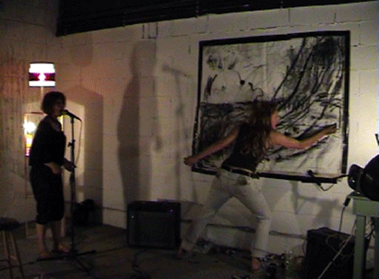 The performance featured Claire Zakiewicz painting on canvas accompanied by composer and musician Kuljit Bhamra, playing the world’s first electronic tabla of his own invention. The music and painting was improvised, with the artists collaborating in real time. |