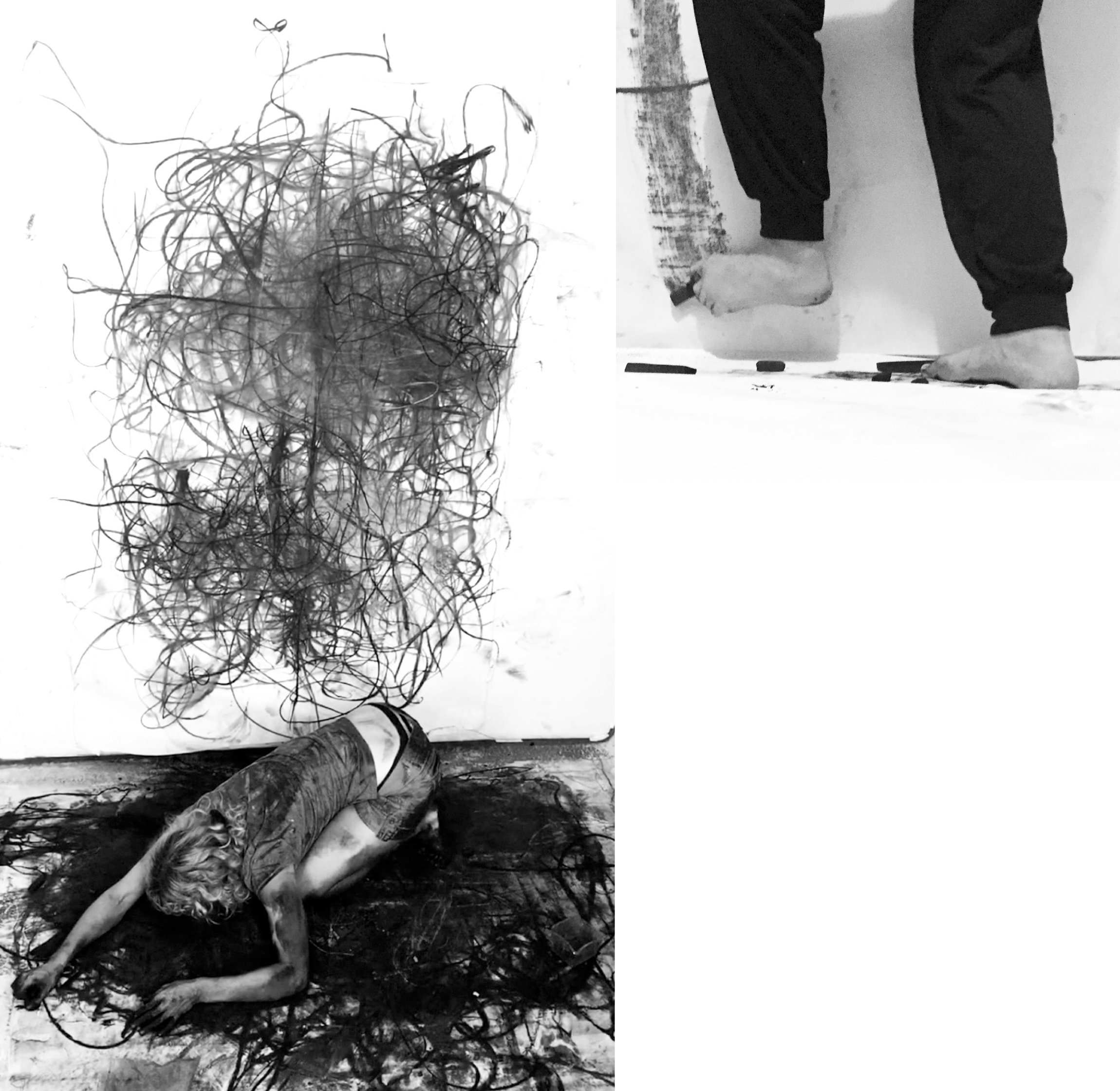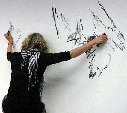 Claire Zakiewicz is an inter-disciplinary artist working in both London and NYC. She is interested in the (meta)physical relationships between sound, drawing, movement, how we read drawings and the processes that underlie our emotional relationship with art. Mostly working with performance painting, Zakiewicz often works collaboratively and uses dance and acting methods as part of her drawing and painting practice. She has a background in improvised music and drawing as well as composition and inter-disciplinary scores. She contributed a chapter describing her drawing practice for the volume Aesthetics of Imperfection: Spontaneity, Flaws and the Unfinished (Bloomsbury), 2020. website: www.clairezakiewicz.com